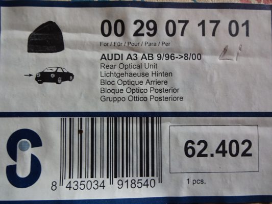 Rücklicht Audi A3 8L Links Vgl.nr.: 8L0945095A Neu