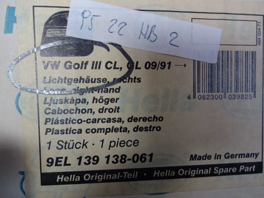 Rücklicht Vw Golf 3 Rechts Vgl.nr.: 1H6945112A Neu Hella