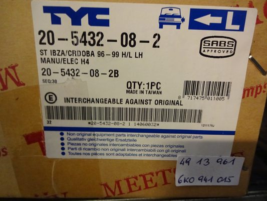 Scheinwerfer Seat Ibiza2/Cordoba Links Vgl.nr.: 6K0941015 Neu