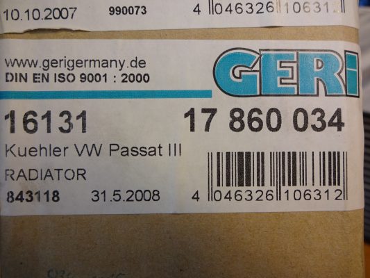 Wasserkühler Vw Passat B3/B4 Vgl.nr.: 353121253AC/AL Neu
